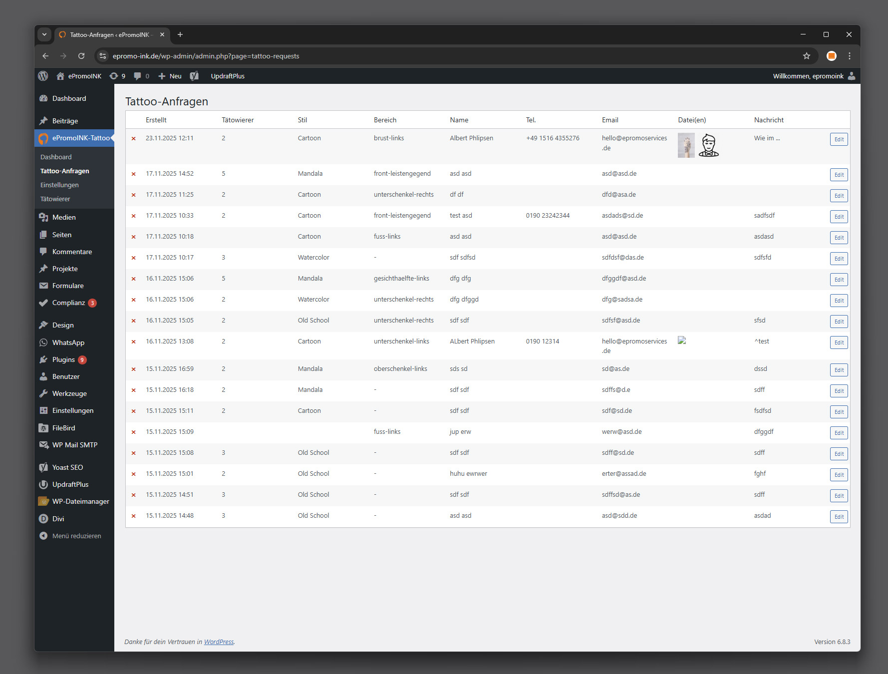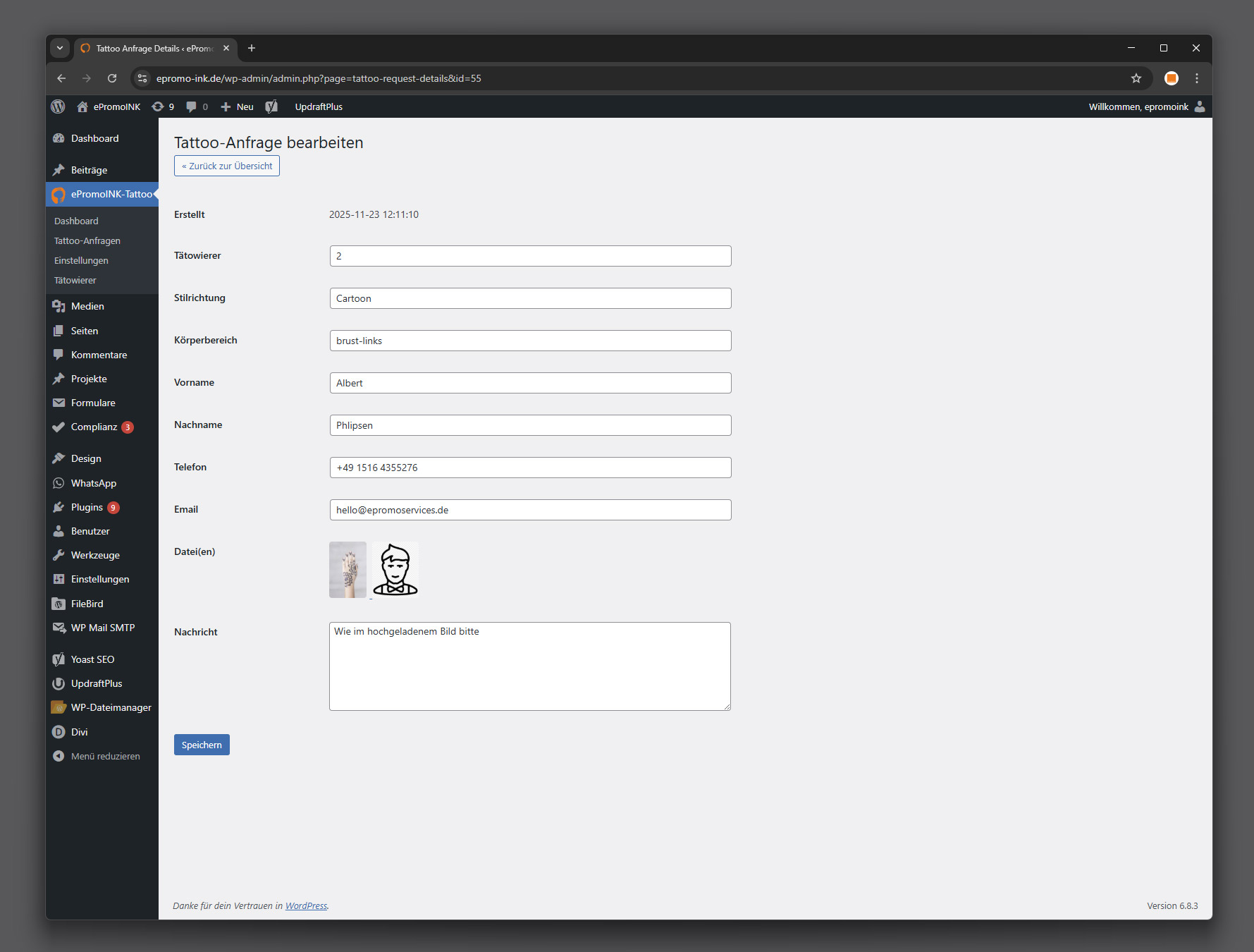 Tattoo Anfrage Plugin.